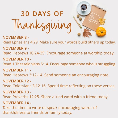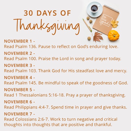 Let’s focus on giving thanks throughout the month of November with a special Thanksgiving Challenge.